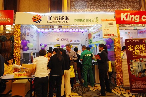 圖為曠遠(yuǎn)能源參加莆房網(wǎng)家具建材團(tuán)購(gòu)會(huì)現(xiàn)場(chǎng)