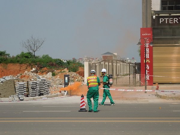 本次演練假想第三方在道路綜合改造施工過程中采用挖掘機進行開挖取土,不慎將地下燃氣管道挖破,造成管道燃氣大量泄漏,泄漏現(xiàn)場有火星出現(xiàn),引發(fā)燃氣著火事故。公司在接到現(xiàn)場負責人員報警后,迅速啟動事故應(yīng)急處置預案,各救援小組在事故應(yīng)急指揮部的指示下,緊張而有序地開展應(yīng)急處置工作,整個演練過程各司其職、忙而有序:安全警戒、治安維護、火災消除、管網(wǎng)搶修、燃氣復供,演練歷時30分鐘。