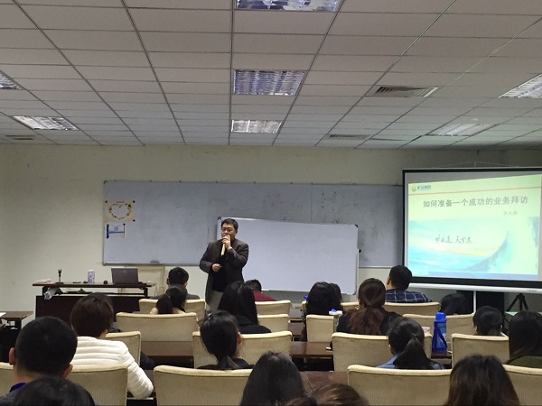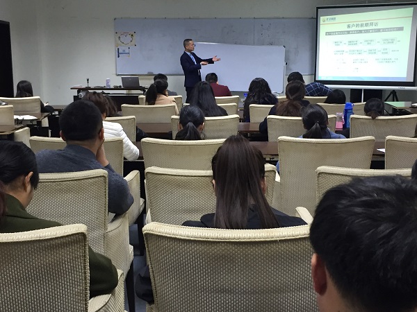 隨后,市場(chǎng)開發(fā)中心總經(jīng)理李大勇以分享經(jīng)驗(yàn)為切入點(diǎn),開始了當(dāng)天的課程,課程共分兩大模塊:一、如何拜訪客戶;二、實(shí)用商務(wù)禮儀分享。