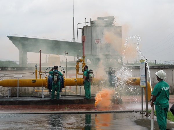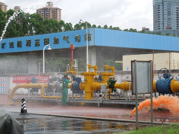 當(dāng)天上午9時許,由演練總指揮副總裁黃劍鋒正式下達(dá)演練指令,演習(xí)的內(nèi)容為荔園站遭到恐怖襲擊,調(diào)壓站設(shè)備壓力表遭到破壞,出現(xiàn)泄漏,被荔園站保安和員工發(fā)現(xiàn)并及時控制,封鎖現(xiàn)場啟動應(yīng)急機(jī)制。隨后,場站人員及消防部門通過向泄漏處噴灑消防水降低現(xiàn)場天然氣濃度,搶險組到場后對受損管線進(jìn)行切換,保證天然氣正常供給,并更換受損儀表,上午10時順利搶修完畢并恢復(fù)使用。