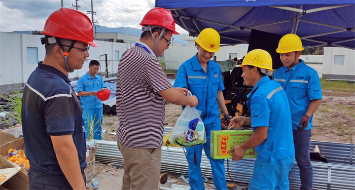 隨著“盧碧”臺風(fēng)帶來的雨水的停歇,秋老虎又再發(fā)威,站在室外就算不動,片刻功夫都會讓人汗流滿面。但在施工現(xiàn)場,卻有那么一群人,即使頭頂烈日,也一樣堅守在崗位上,認真工作,用汗水換來公司更好的明天,用全身心奉獻詮釋著責(zé)任與擔(dān)當(dāng)。8月16日,上杭公司總經(jīng)理李吉剛、副總經(jīng)理李軍及安全運營部經(jīng)理徐躍深入即報即裝、開發(fā)商施工現(xiàn)場、營業(yè)廳等場所,代表公司向烈日下奮戰(zhàn)在一線崗位上的員工表示了慰問與感謝..